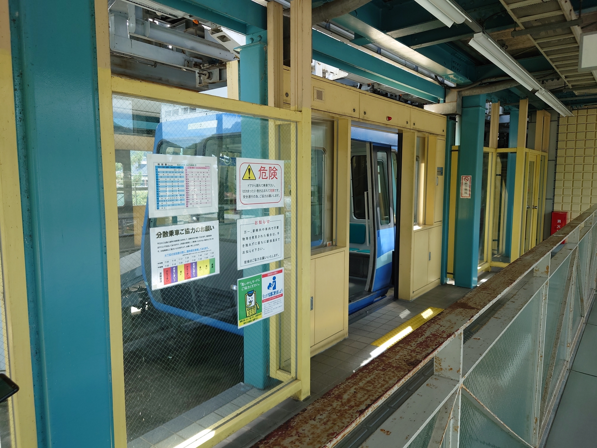 要望があれば動画にしてみようかなと思うのですが、乗った感覚としては加速がすごい。ぐんぐん登ります。屋根付き床付きスキーリフトという感じでしょうか。車内アナウンスはないですが、車椅子の乗客がいる場合は駅員が対応するなど、バリアフリー対応はしている様子でした。