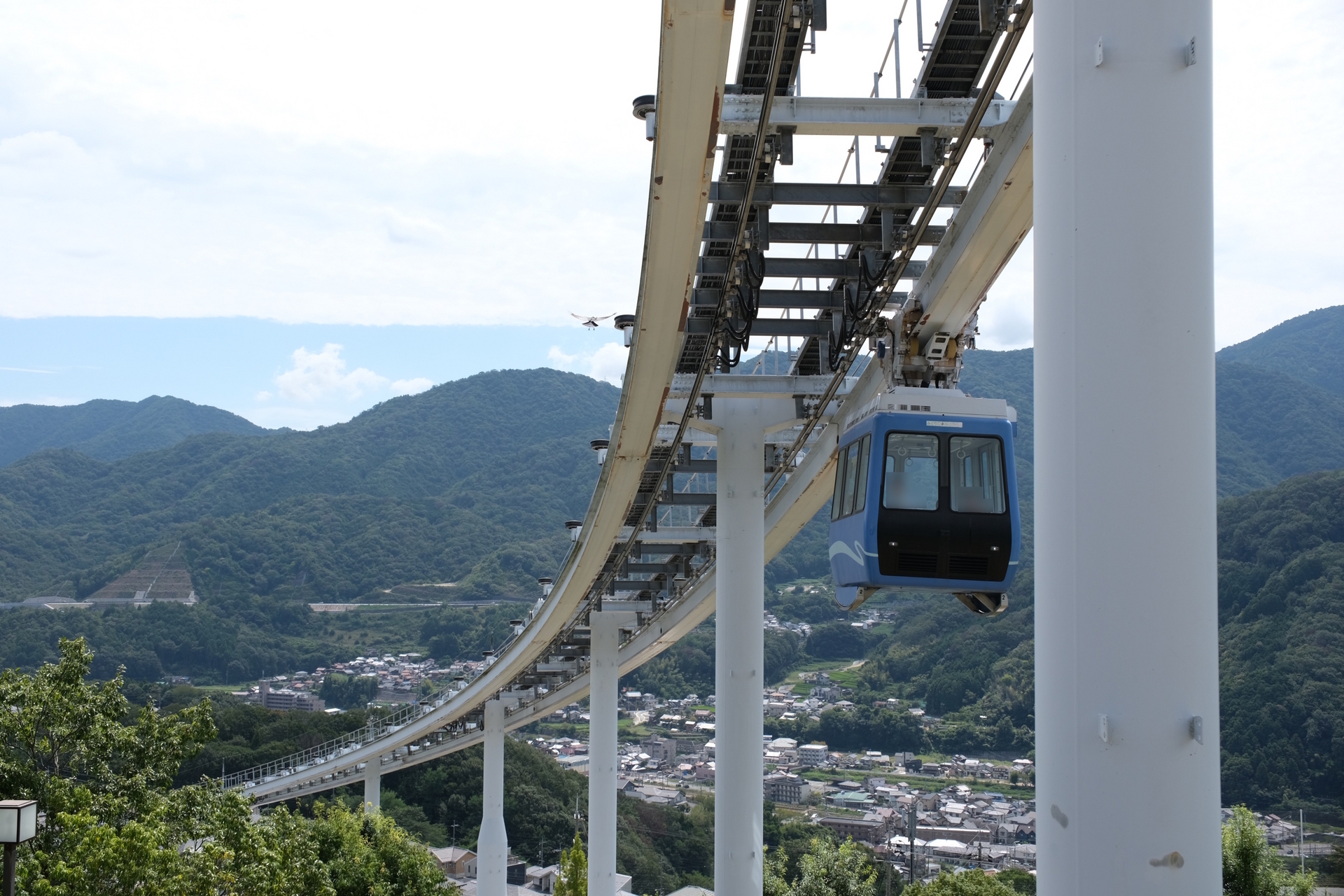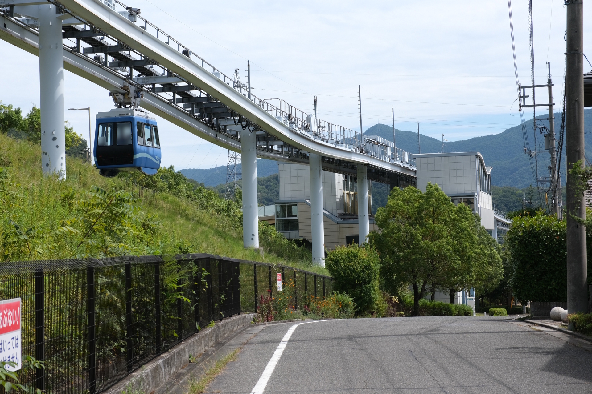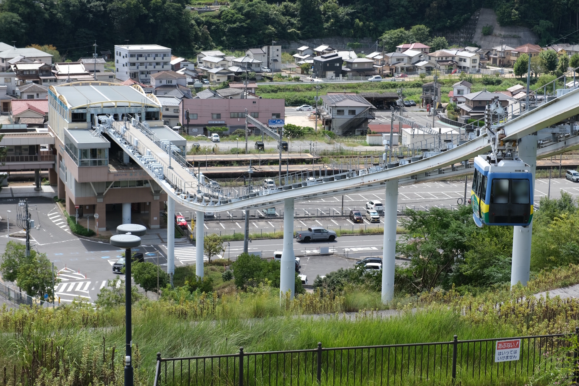 瀬野駅で降りました。ここから、丘の上に登る交通機関である「スカイレールサービス」に乗ります。来年をもって運転を終了するようなので、混まないうちに乗ってみよう、という感じです。片道で170円です。
