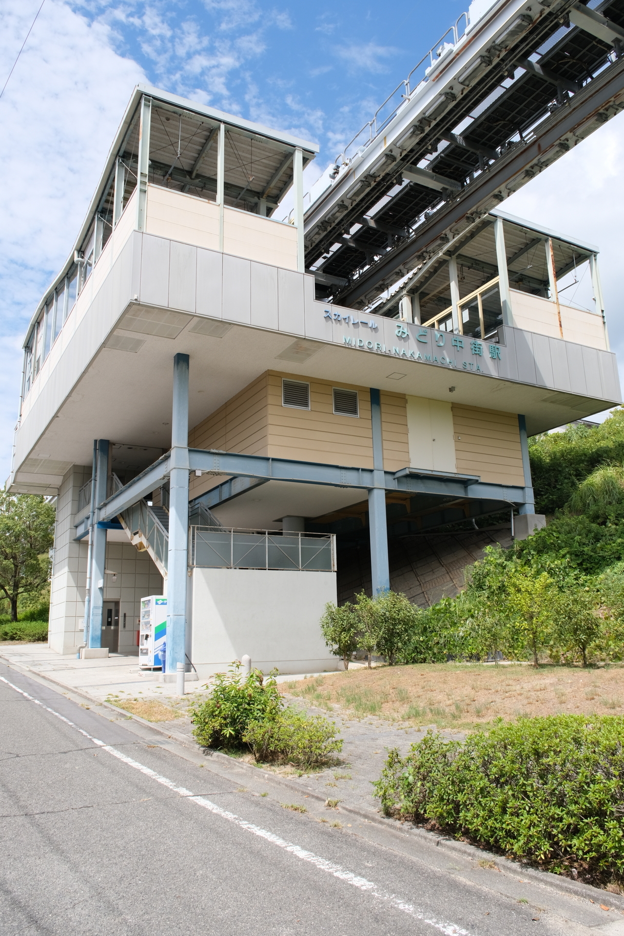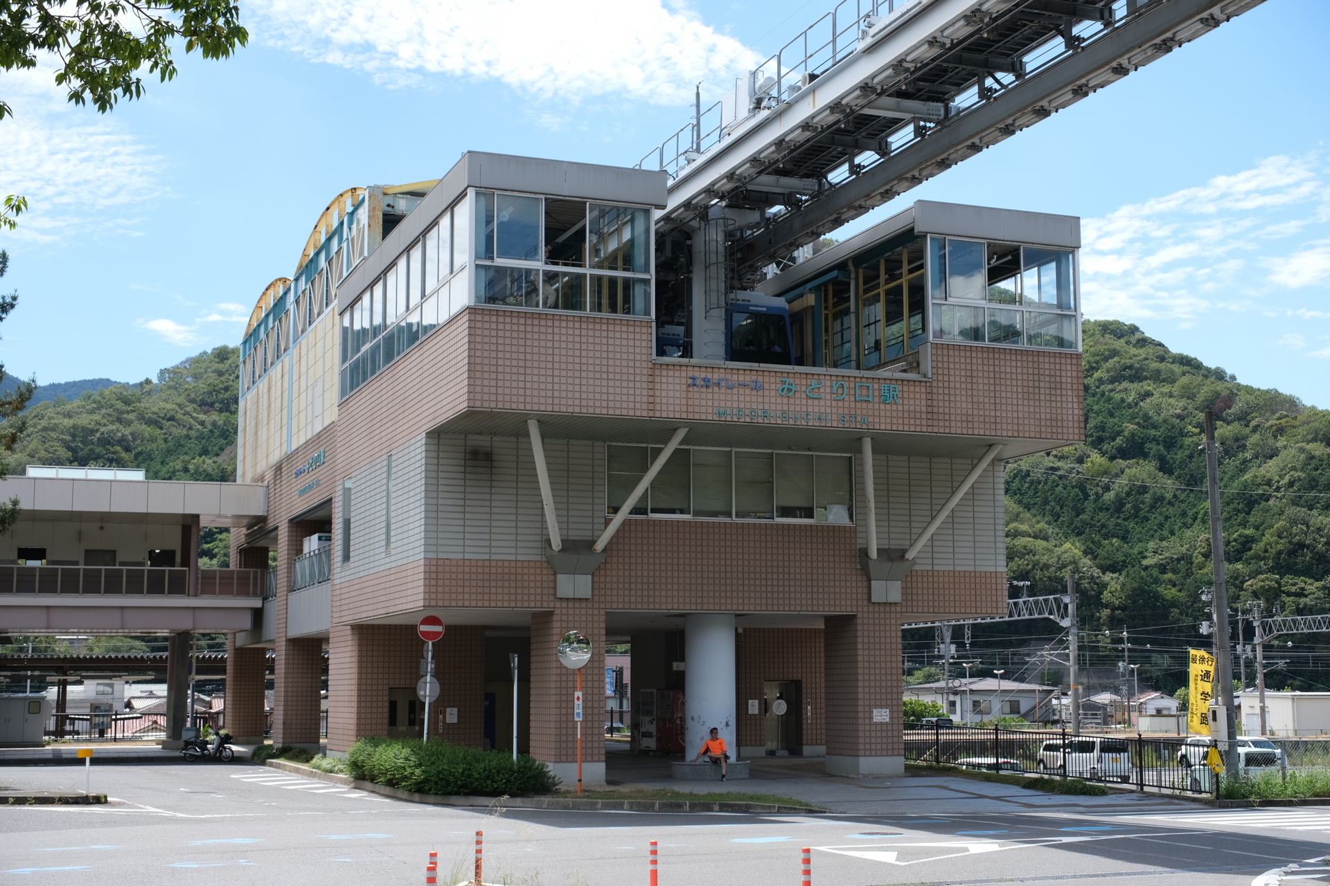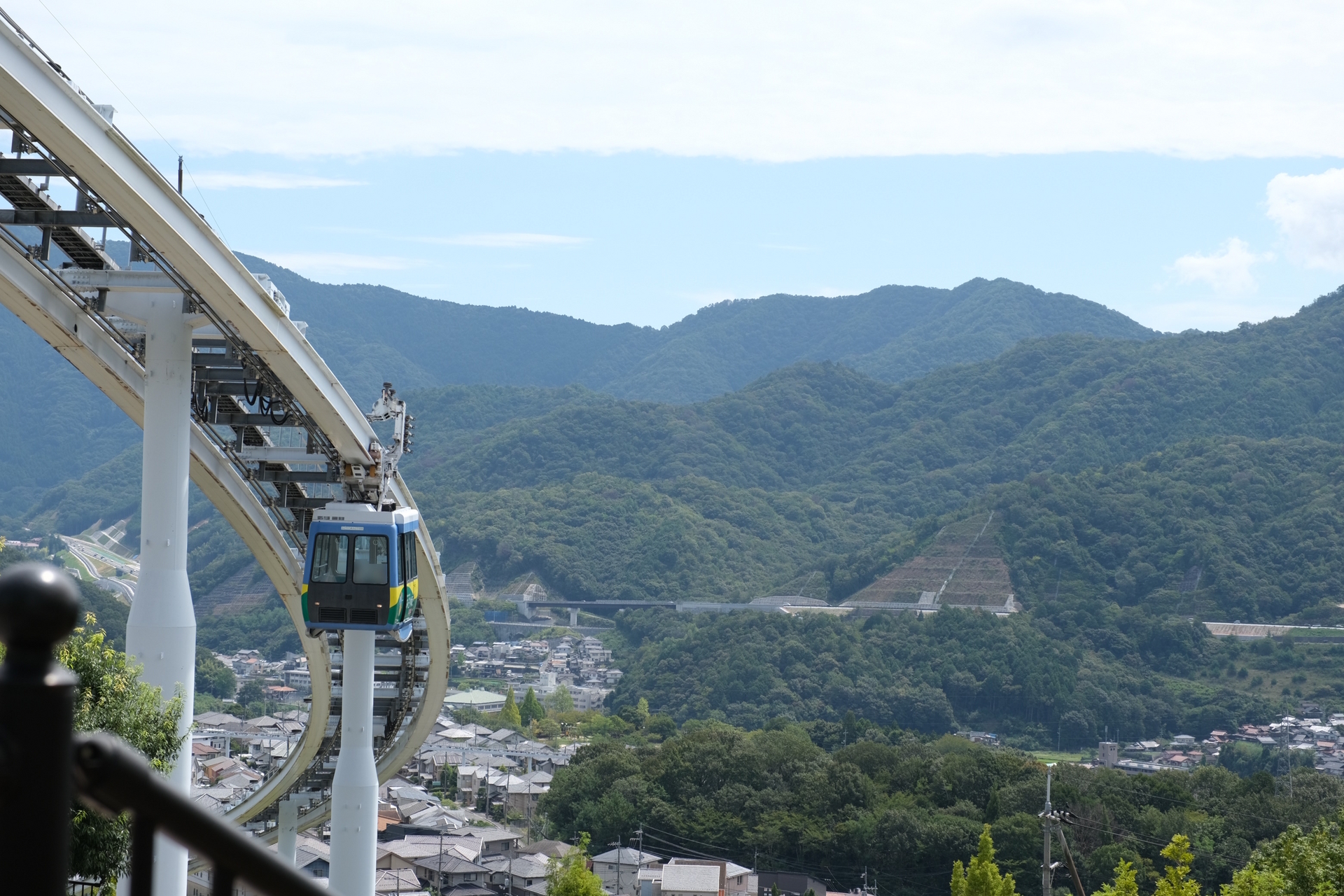 瀬野駅で降りました。ここから、丘の上に登る交通機関である「スカイレールサービス」に乗ります。来年をもって運転を終了するようなので、混まないうちに乗ってみよう、という感じです。片道で170円です。