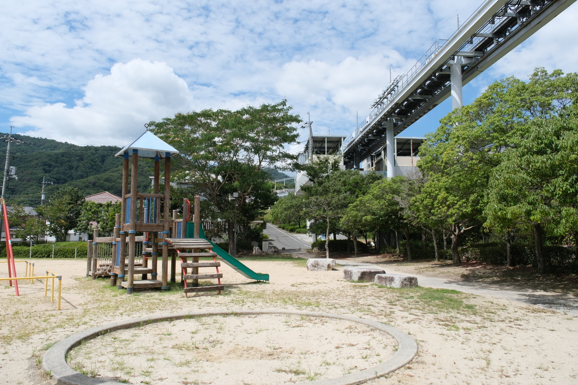 道中の公園では謎のオブジェや遺構みたいな設備があっりしていて、