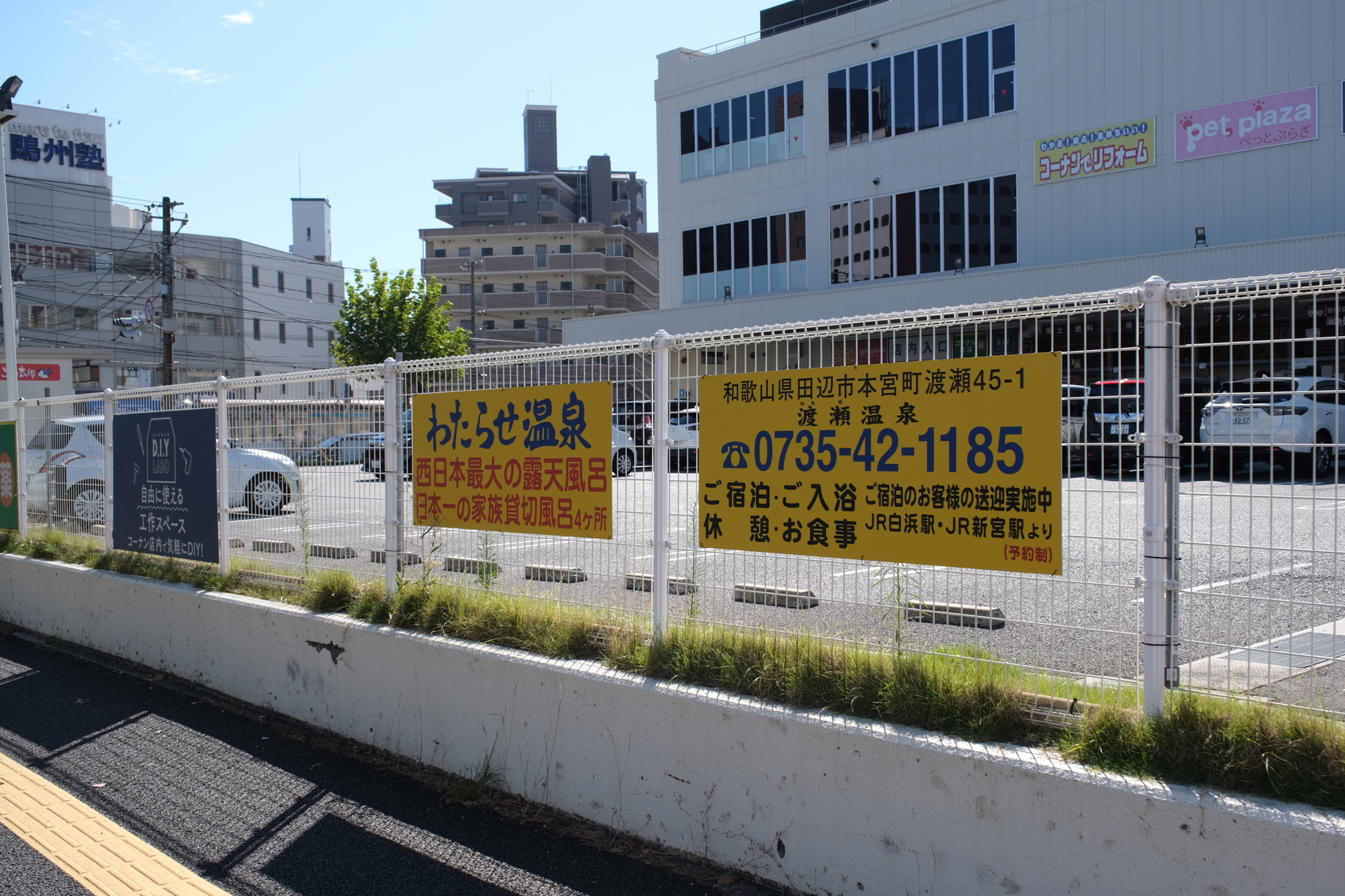 え、広島に、和歌山の温泉の広告がなんであるの・・・? しかも三重県間近の新宮からの送迎もあるんだ・・・。結構距離あるんですけど。
