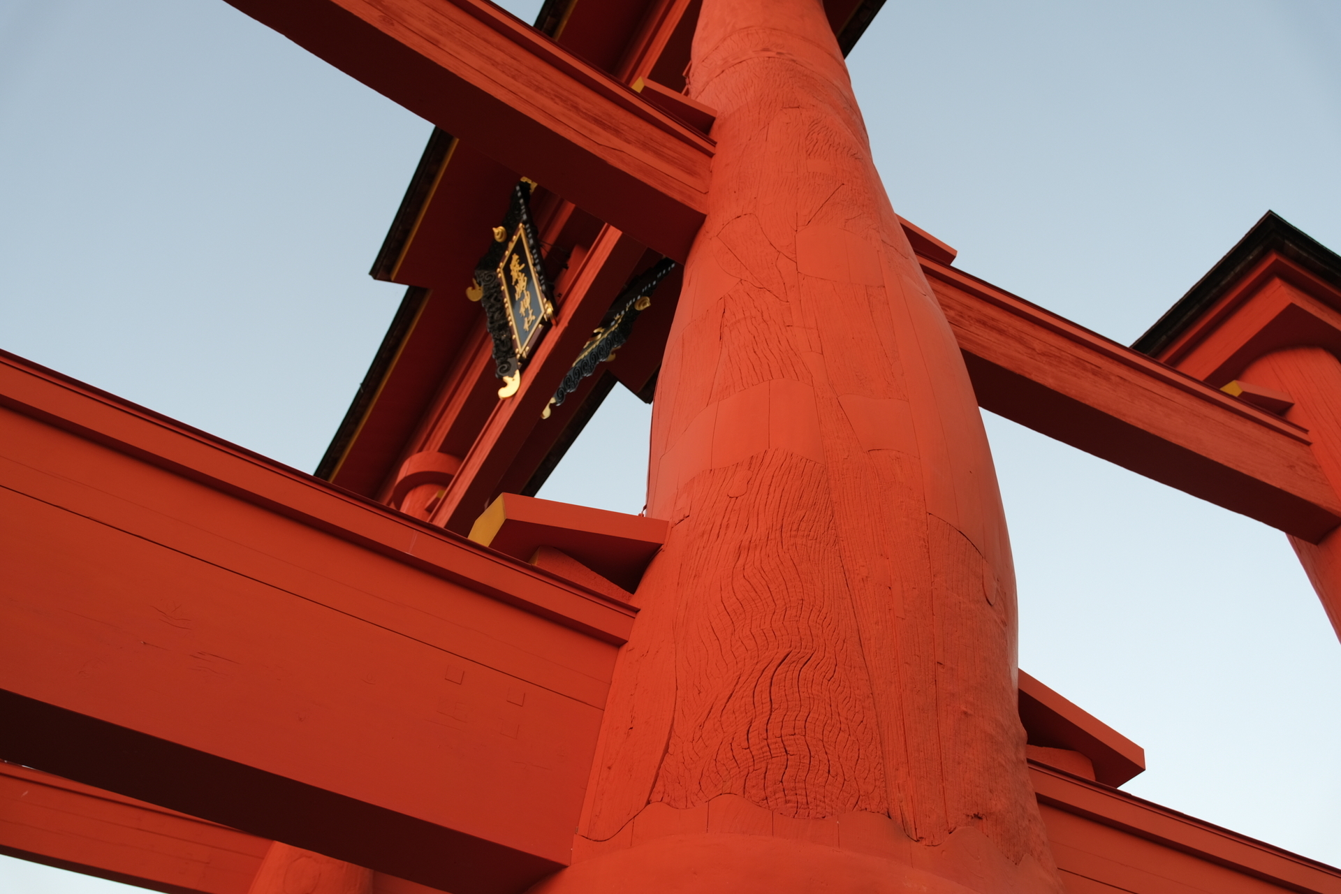 厳島神社の出口は入り口とは真反対の場所にあります。せっかく潮が引いているので、大鳥居を経由しながら戻ろうと思います。