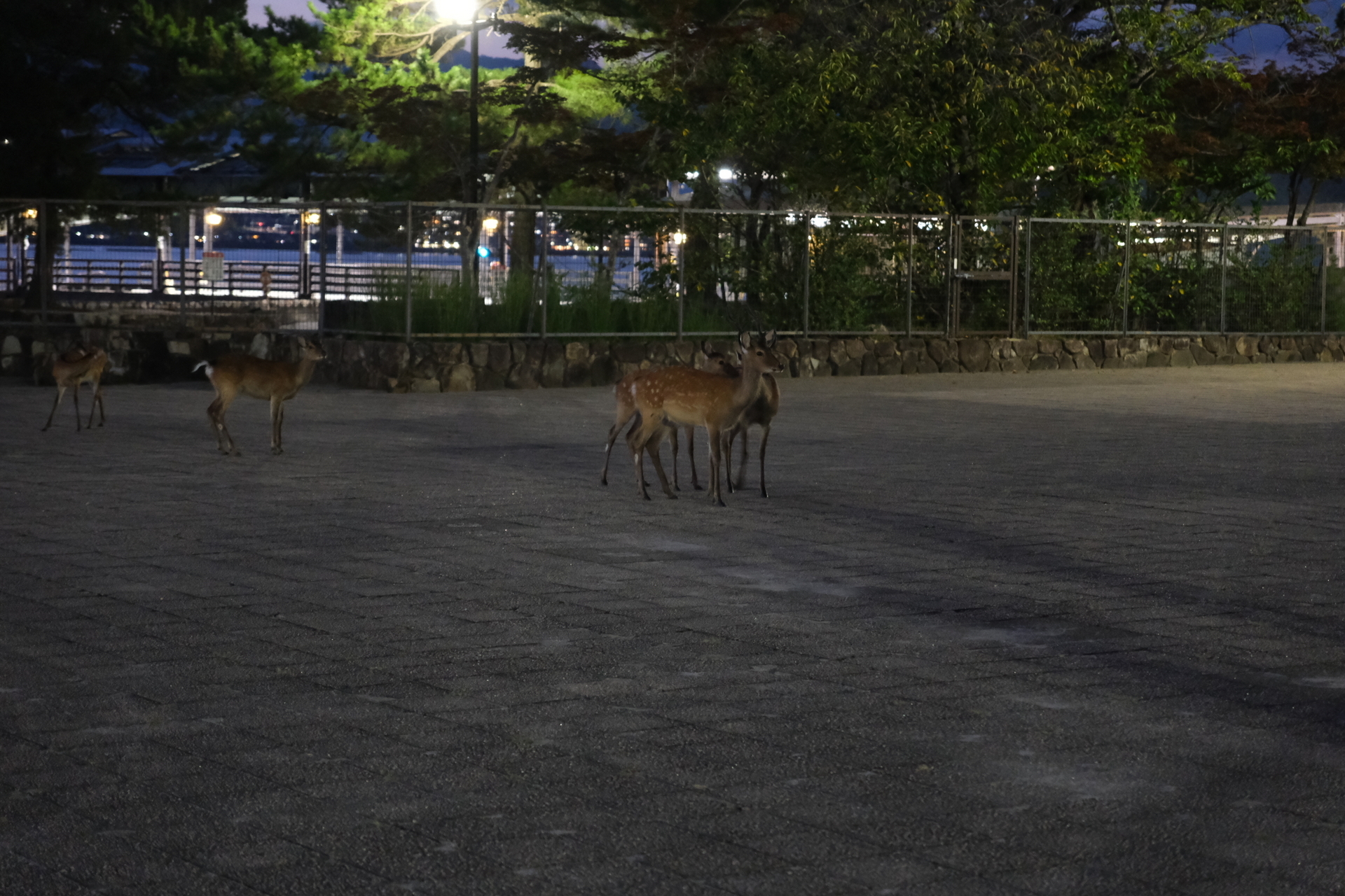 宮島に着きました。予定では15時前には到着して数時間観光するつもりでしたが、もう時刻は17時前。とりあえず厳島神社まで行ってみようと思います。