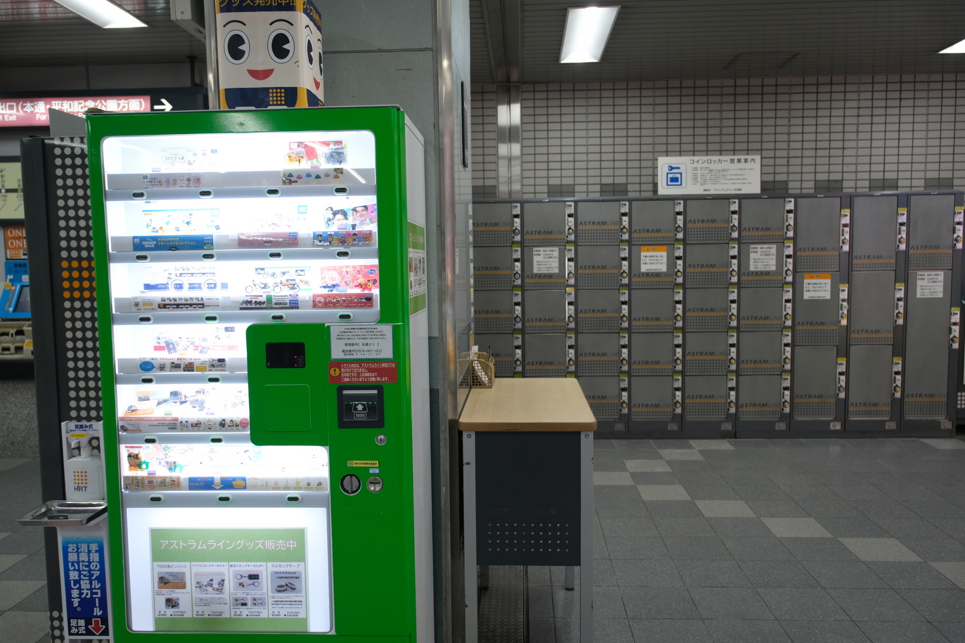 とりあえず奥に進んでアストラムラインの本通駅のコインロッカーで荷物を預けます。あとで説明しますが、アストラムラインの本通駅は厳密には地下鉄駅のため、地下鉄駅でよく装備されているコインロッカーがあります。路面電車だけだと、どこにコインロッカーがあるのかわからないので、これは助かる。