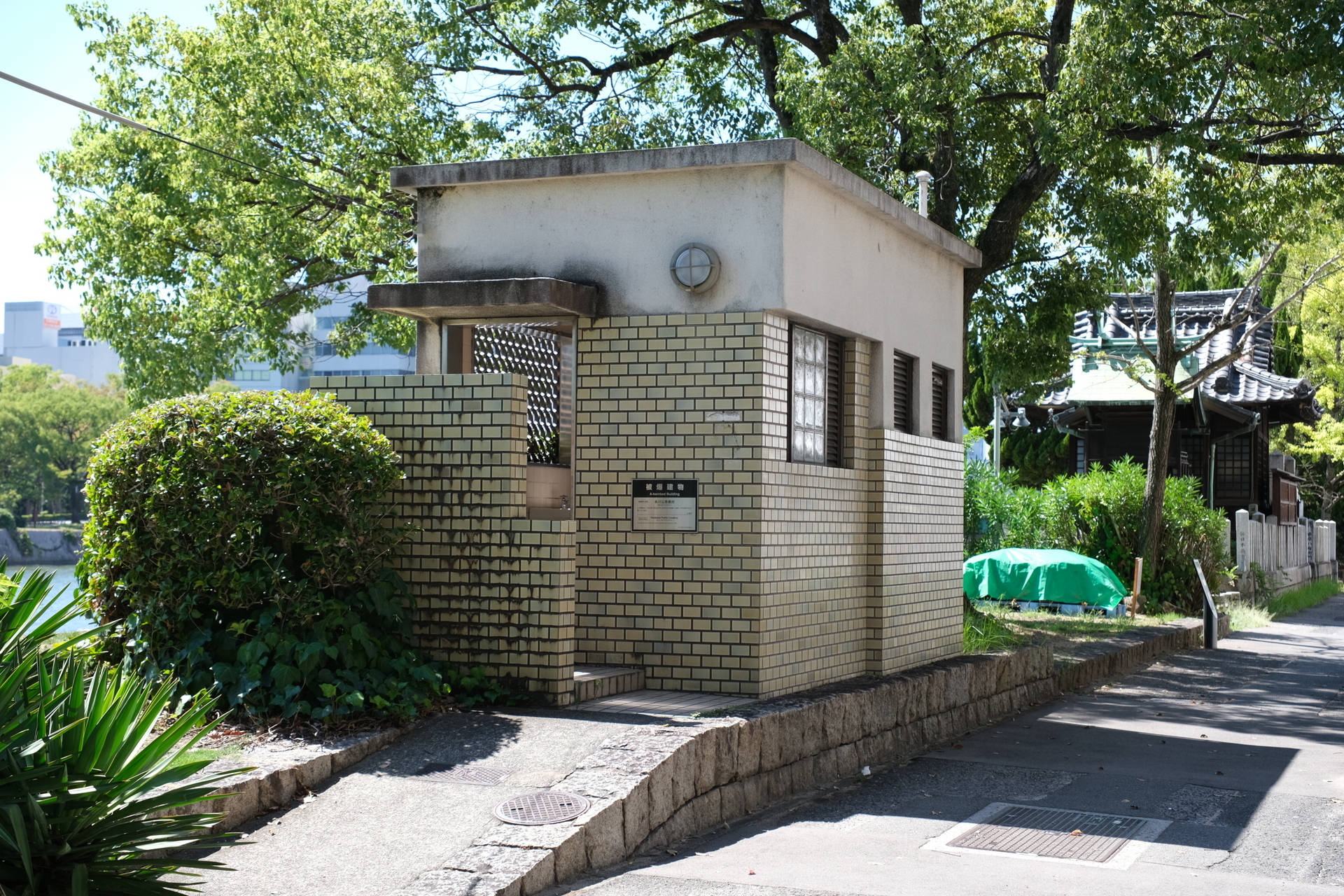 なんの変哲もないトイレですが、実は被曝建物なんですって・・・。看板も普通に「被曝建物」とあります。トイレとして普通に機能しており、離れた直後に使用する光景も見かけました。