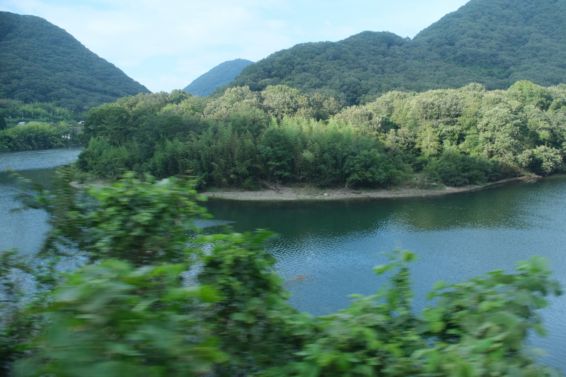 広島市街から離れ、車窓は山の迫る景色に。ガラガラの普通電車で晴れた空、一番楽しく列車旅している瞬間なのかもしれません。