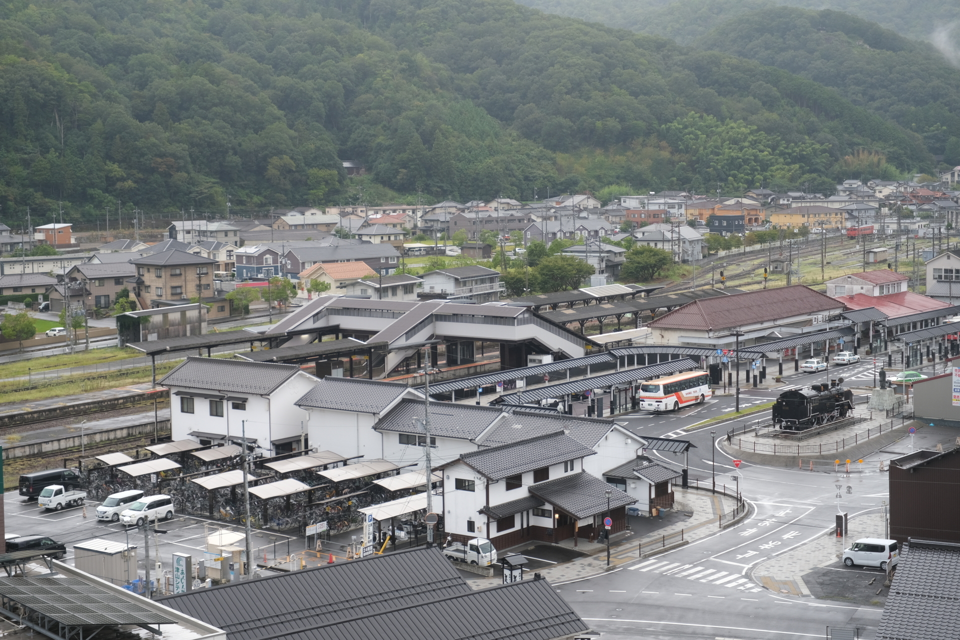 おはようございます。9月5日、いよいよ旅行最終日になりました。ホテルの窓から津山駅が見えます。