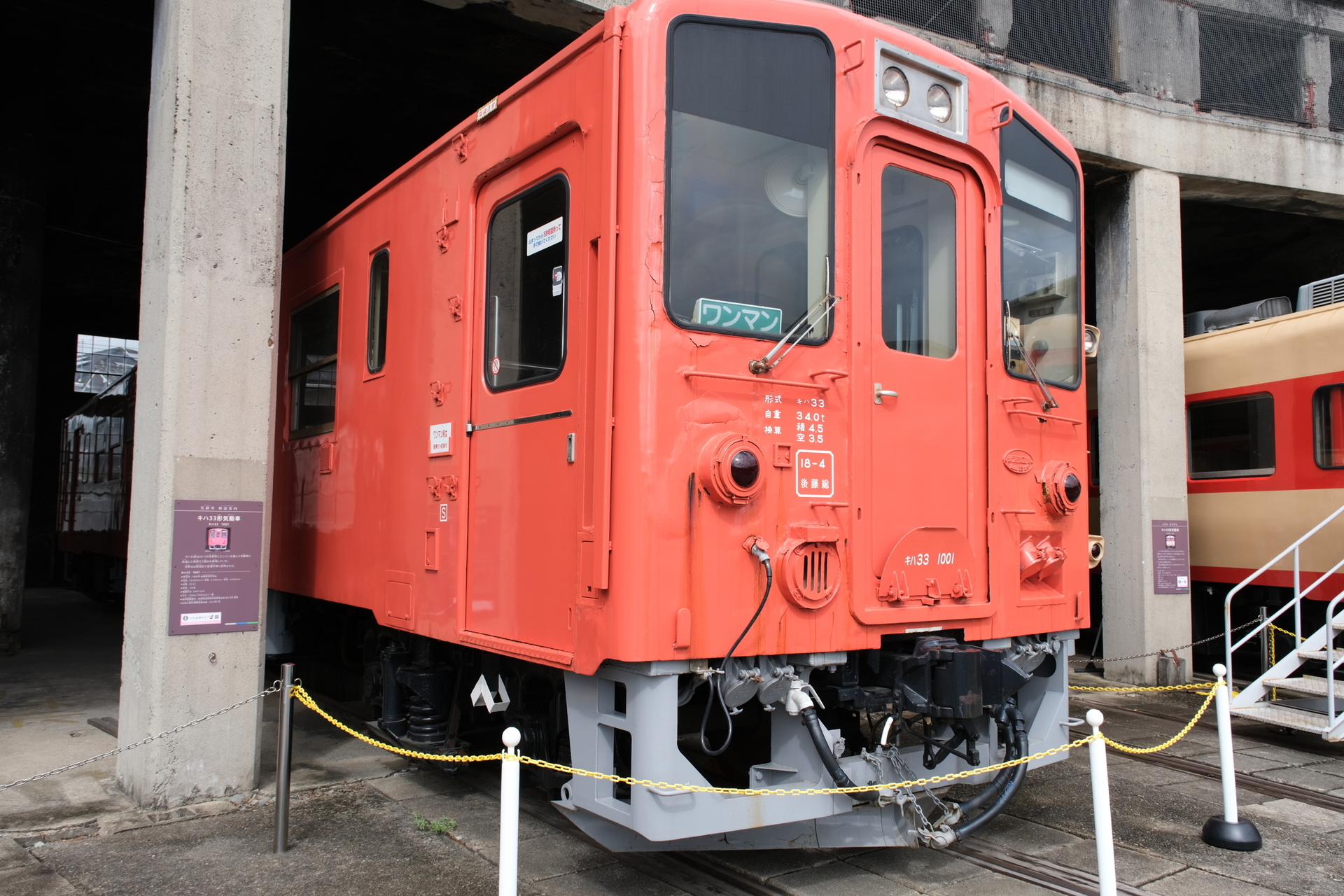 展示車両の中で興味があったのはキハ33形。1980年前後に作られて余った50系客車を魔改造してできた気動車なんですが、20年ぐらいしか活躍されなかった経緯を持ちます。同じようなことをやったJR北海道のキハ141形はつい最近まで活躍してたので、その差はなんでだろうな~と思いました。多分2枚目の無理やり乗務員室の部屋を作ったのが要因かと。